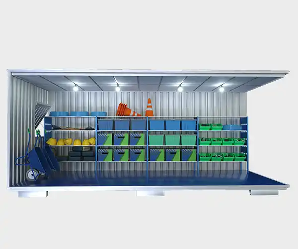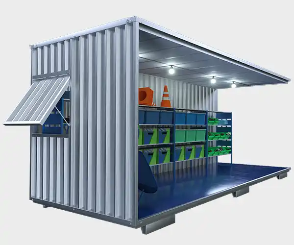 Desenvolvido para ser versátil e armazenar todo tipo de material com muita segurança, desde ferramentas até matérias-primas. Além do baixo custo operacional, o Container Habitável Almoxarifado é de rápida instalação. Ideal para garantir espaço seguro e resistente por longos períodos em local aberto.