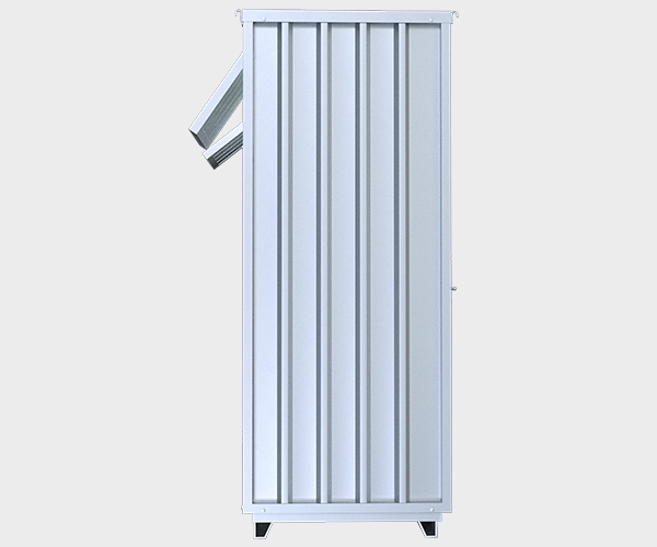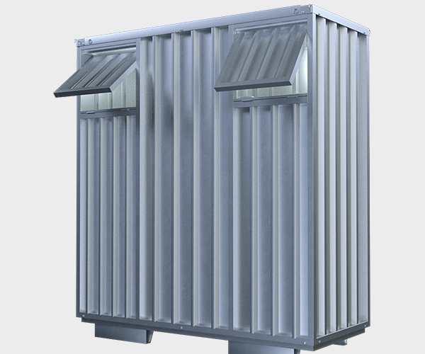 | Laterais: | Fabricadas em chapas galvanizadas com espessura de 6,5mm e dobras em trapézio 2,50mm |