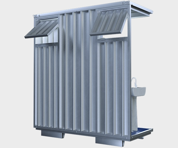 Pequeno no tamanho e enorme na praticidade, o Container Habitável Banheiro Compacto possui uma divisória que permite o uso simultâneo por usuários de diferentes gêneros. É uma solução eficiente em locais com espaço reduzido e circulação limitada de pessoas. Também pode ser usado para garantir privacidade em obras, eventos e até lavouras.