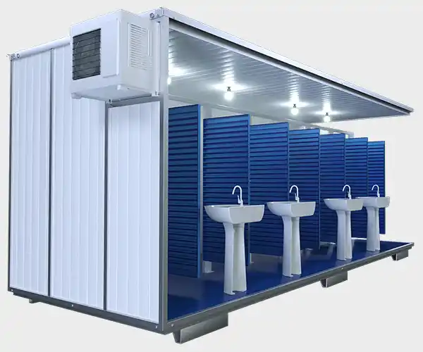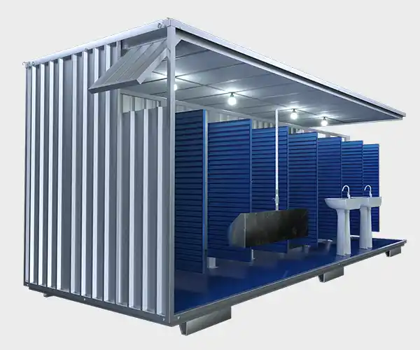 O Container Habitável Vestiário com Banheiro é a melhor solução para fornecer chuveiros e toaletes em um espaço compacto e funcional. Perfeito para festivais, obras, expedições e lavouras, ele combina praticidade e conforto em um único container. A instalação é fácil: basta conectá-lo à rede elétrica, de água e esgoto e estará pronto para uso.